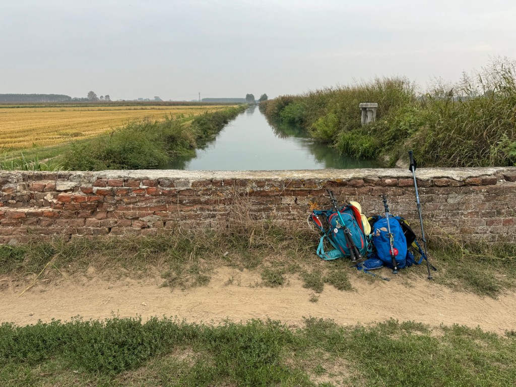 Mortara to Garlasco, overcast for the first half and then steady rain for the second half, supposed to be 21km but turned into 16km.