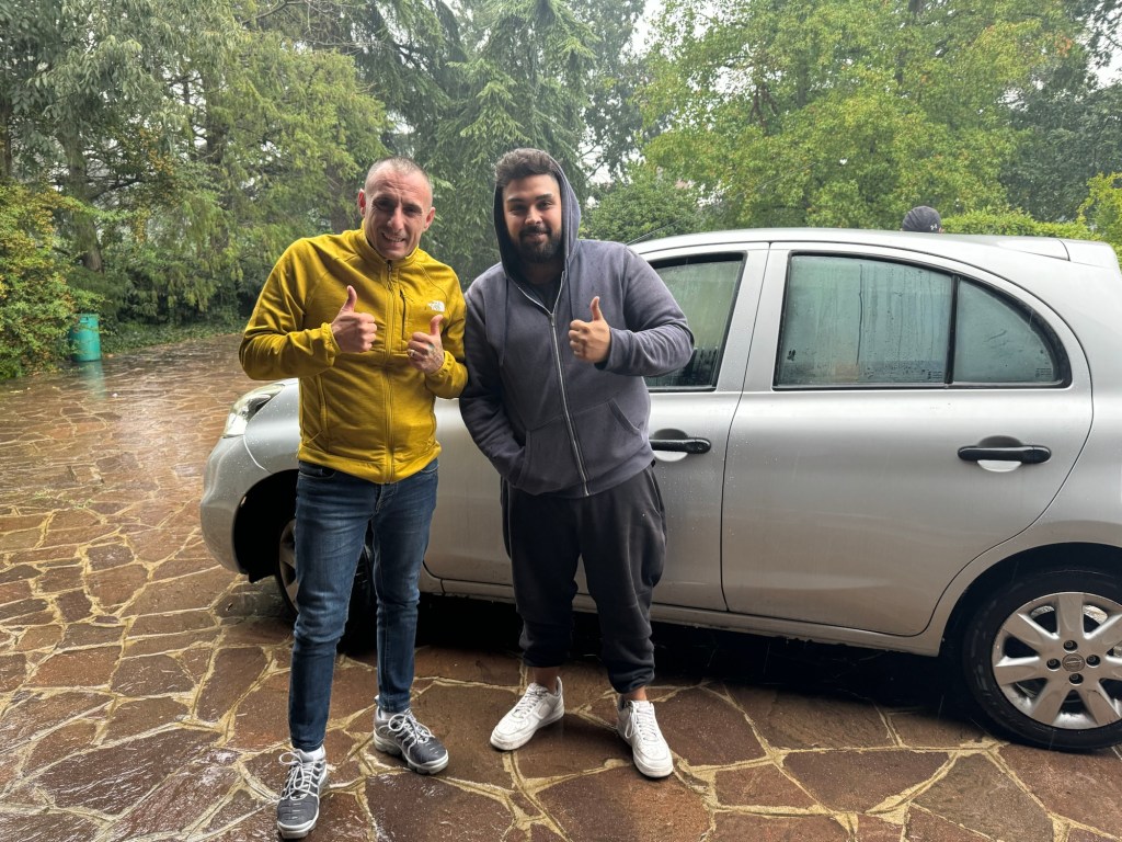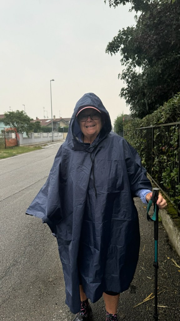 Thankfully there was a bar where we had hot tea and some lunch, hoping the rain would stop but no such luck. We decided to take the train the last few kilometers because of muddy conditions but…no such luck. No train tickets to be bought, the bus passed us by….we were at another bar trying to get information. Several young men were having a smoke outside. The young woman behind the bar had sympathy for our plight and cajoled them into driving us into Garlasco. They drove us right to the front door of our hotel and refused to accept any “beer” money.