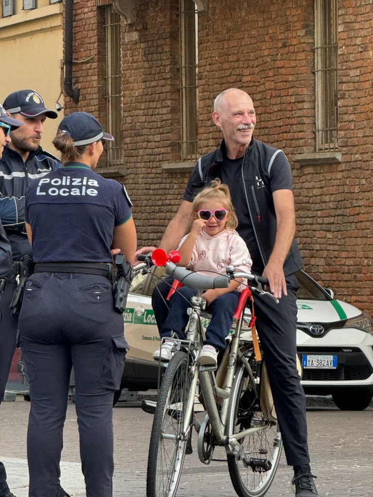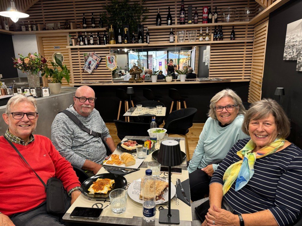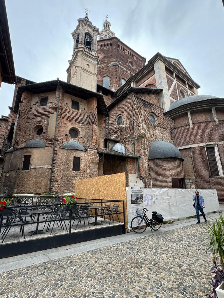The next day was a rest day in Pavia….laundry, a visit to the Duomo in the center, a wonderful lunch with Swiss friends from long ago who passed by Pavia to see us on their way to the Italian riviera, a drink in the square, an Italian LGBTQ gathering/protest, another last supper with friend Mario who caught up with us here and now, a whole new day of walking begins.