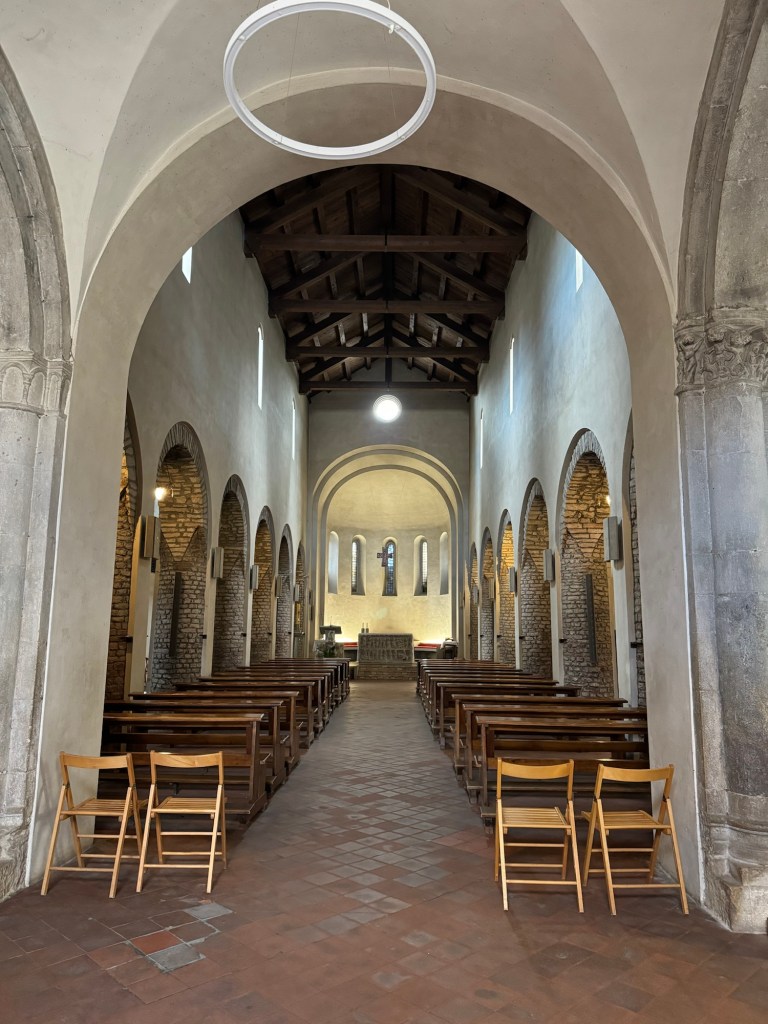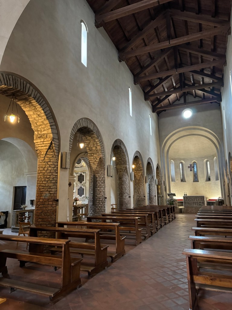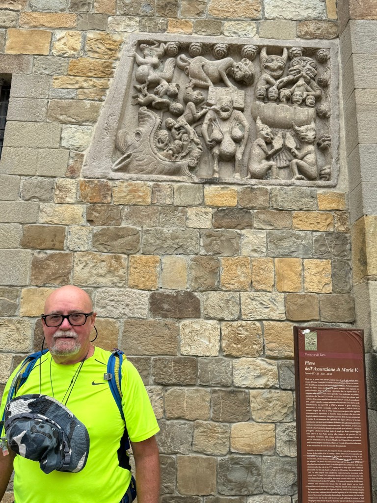 Stopped into an old church, built in 854! We got a pilgrim stamp and a chunk of delicious parmigiana reggiano cheese from the church warden in Formica, then continued on.