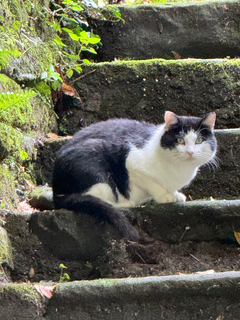 Then we went to see where we might catch a bus if necessary tomorrow before heading off for an afternoon snooze. On our way, we took a few pics of the castle from below….last night walking back to our B&B it was all lit up, and the B&B cat.