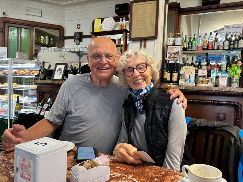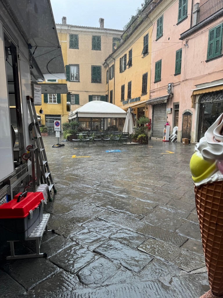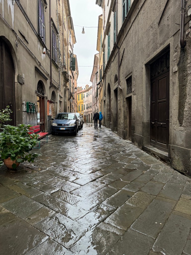 Ilaria drove us right up to our new B&B so we would know where it is and then dropped us, still in the pouring rain near the center. We quickly donned ponchos and made our way to the nearest cafe, which was crowded with people escaping the rain. We sat for a long time.