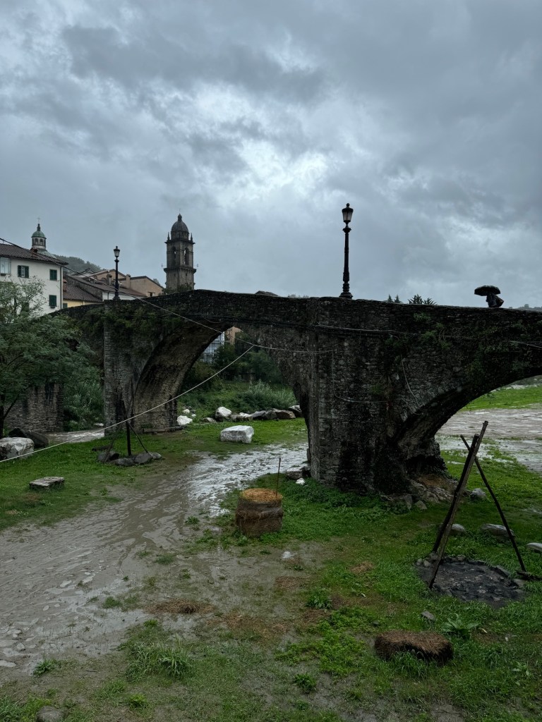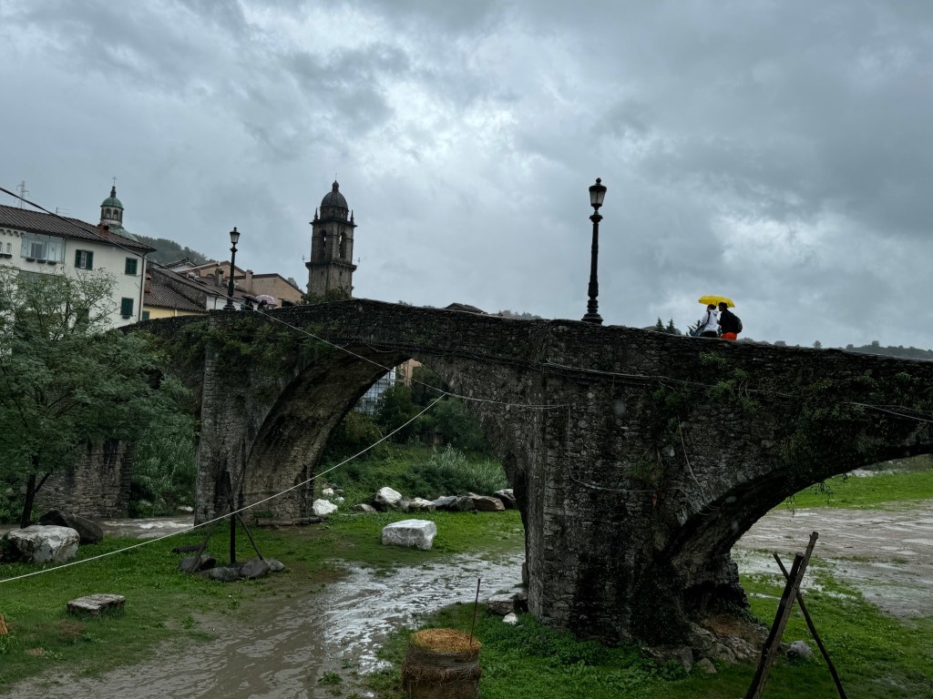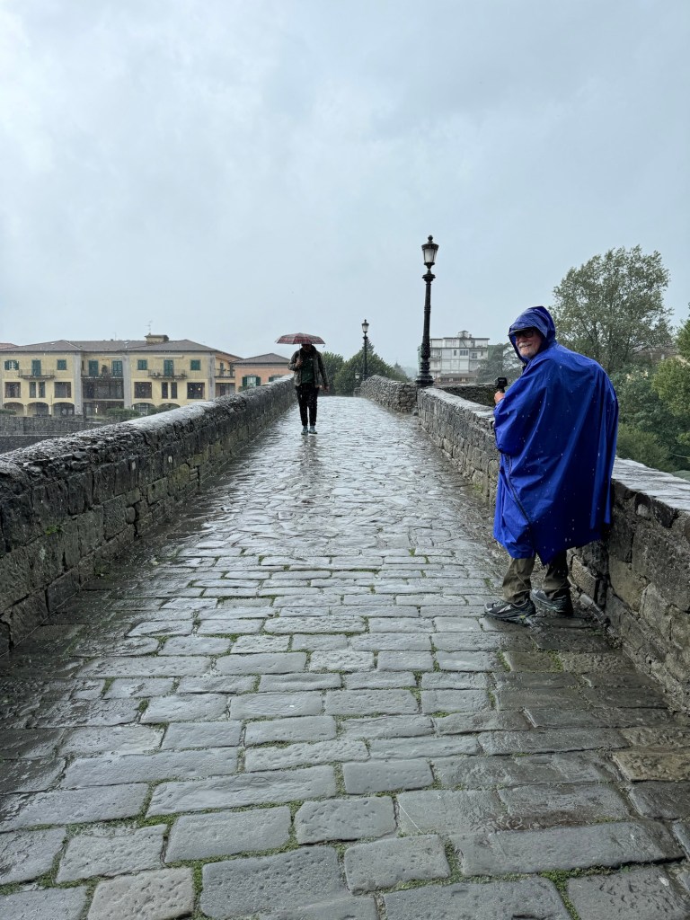 They too had decided to take a ride over the pass and into Pontremoli. It was a good decision. It poured rain. As we drove the twisty turns route from Berceto to Pontremoli, we saw a number of pilgrims, all on the road in their rain ponchos, battling the elements, Brian included!!