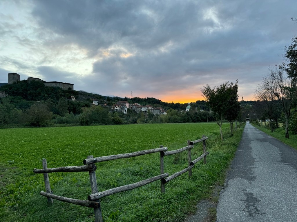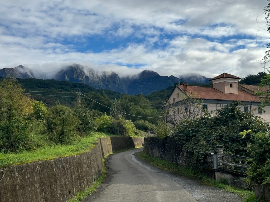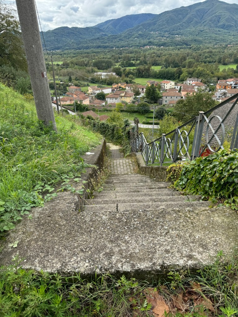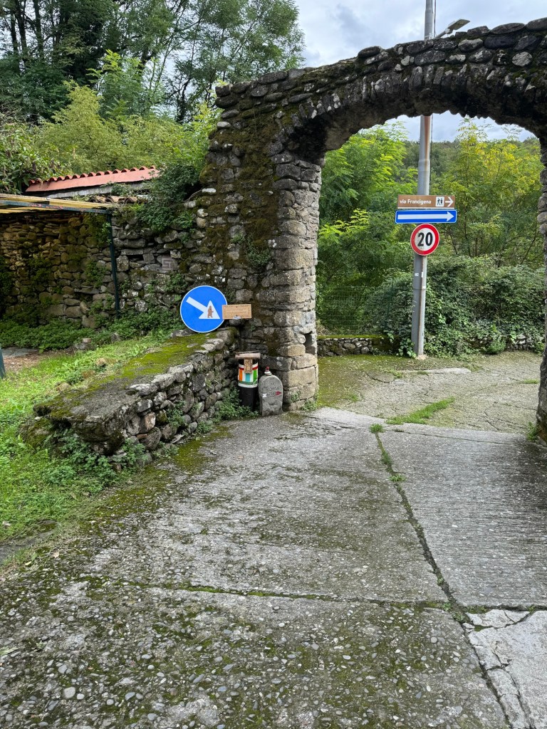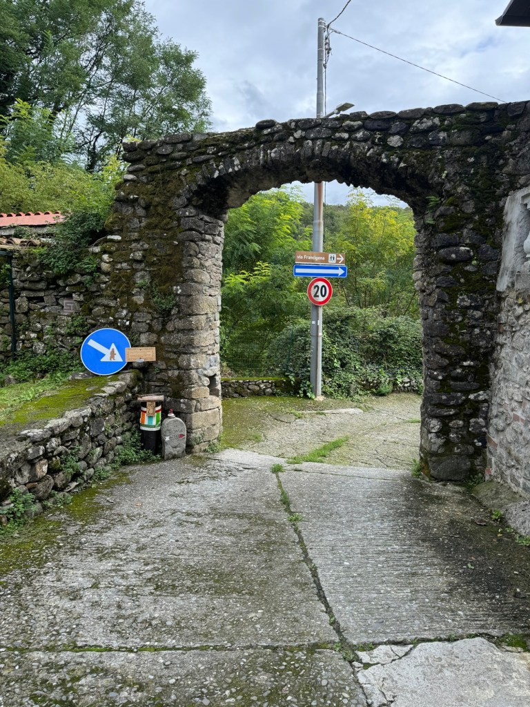 Pontremoli to Mocrone, 18 km, cool, perfect weather for walking. As you’ll see from the pics, there were black clouds threatening but we had not a drop of rain until just after we reached our destination at 3-ish. We walked along country roads mostly, both paved, dirt, or gravel, forest pathways, and stairs up. We had been worried about mud but never encountered anything impossible or impassable. We had to be cautious at times on slippery, moss or leaf covered rocks.