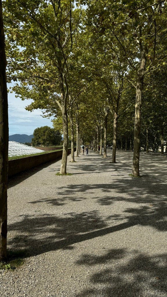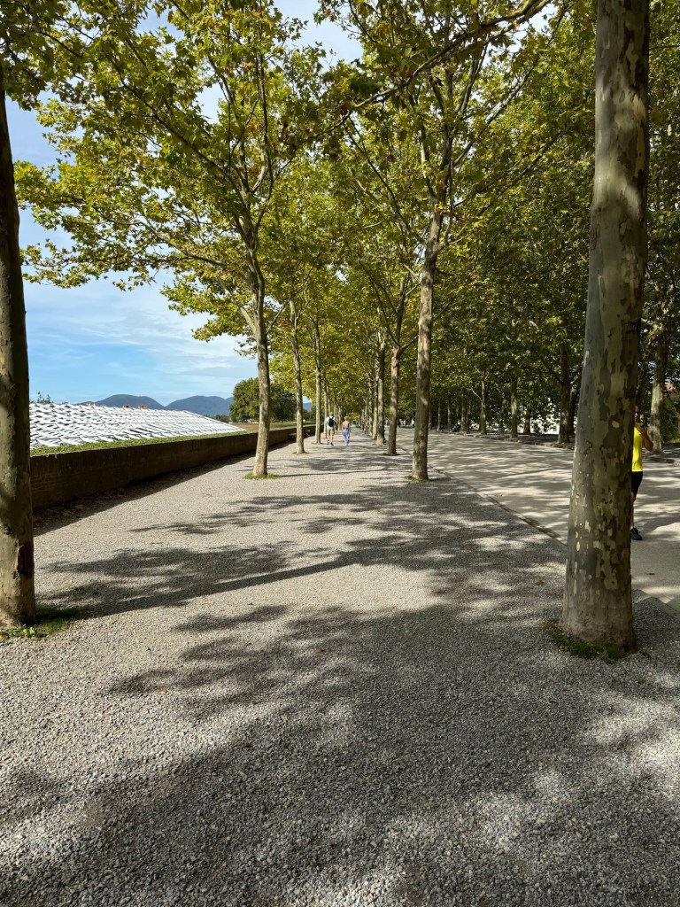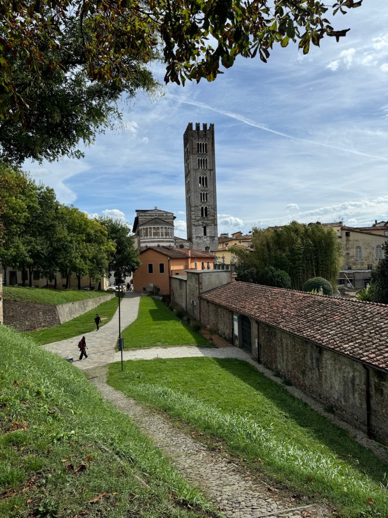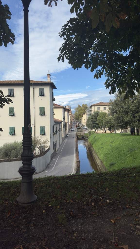 We arrived in Lucca before noon. Found our hotel and set off to explore this beautiful city. The historic center of Lucca is surrounded by a Renaissance era wall, built in the mid 16th to early 17th centuries for defense purposes. It has been repurposed into a public promenade. As we walked the 4.2 km around it, I was reminded of the 5+ km Stanley Park promenade. It has the same feeling to it with walkers, dogs, kids, bikes..!