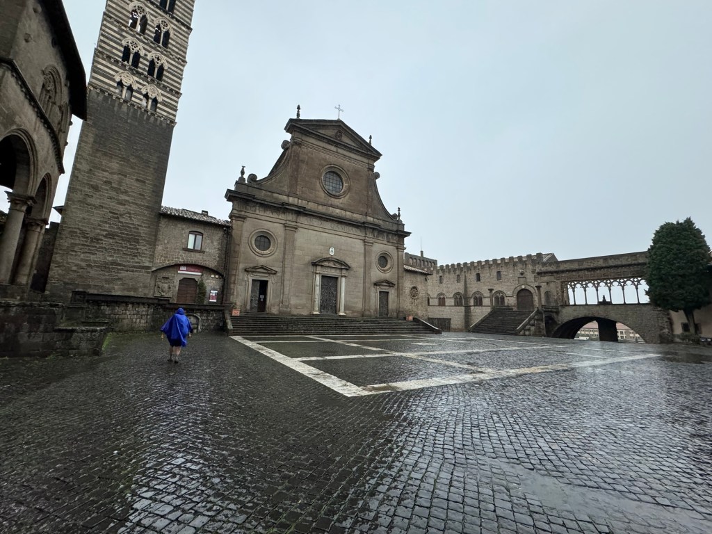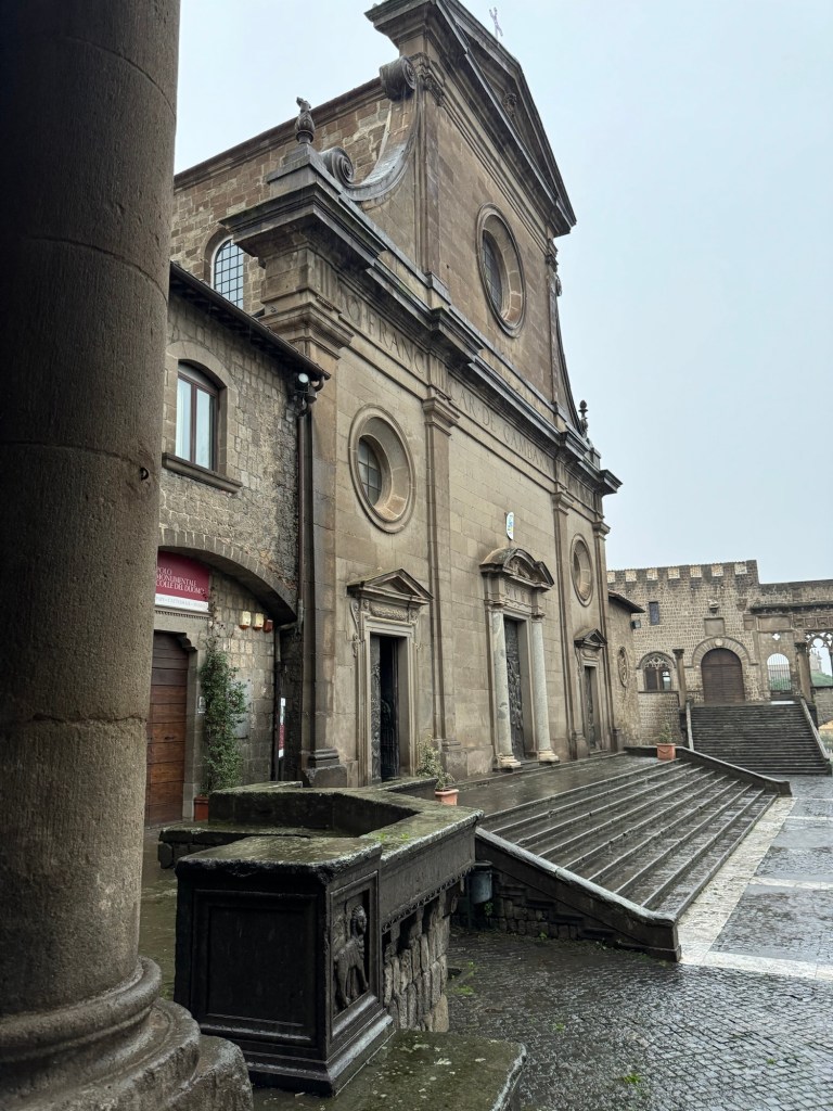 A lovely woman came into the church and…after a while, suggested we might like to go to the Museo Nazionale Etrusco Di Viterbo-something to do in all the rain. It was relatively close to the train station where we were headed. By the time we got to the train station we were pretty wet so we passed on the museum, (it was another 2 km away) choosing a coffee instead.