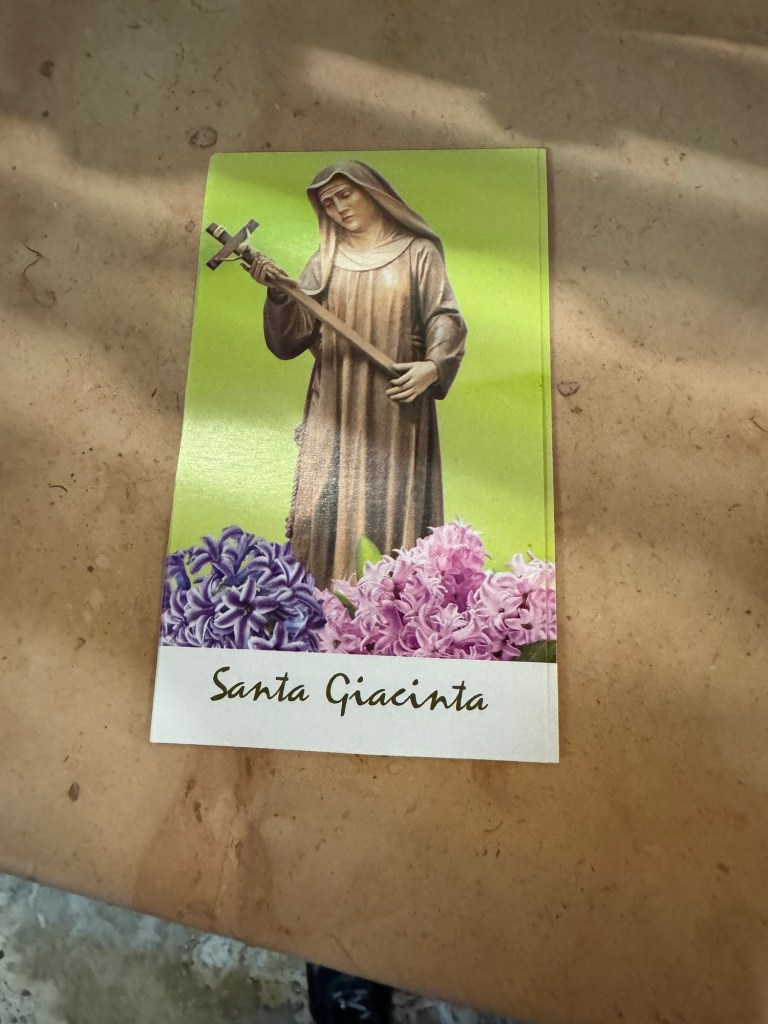Couldn’t check in to our B &B until 3 so found a wonderful trattoria where we had lunch and dried out, accompanied by a quarter liter of red wine, (big glasses for drinking wine, small ones for sipping water lol.)