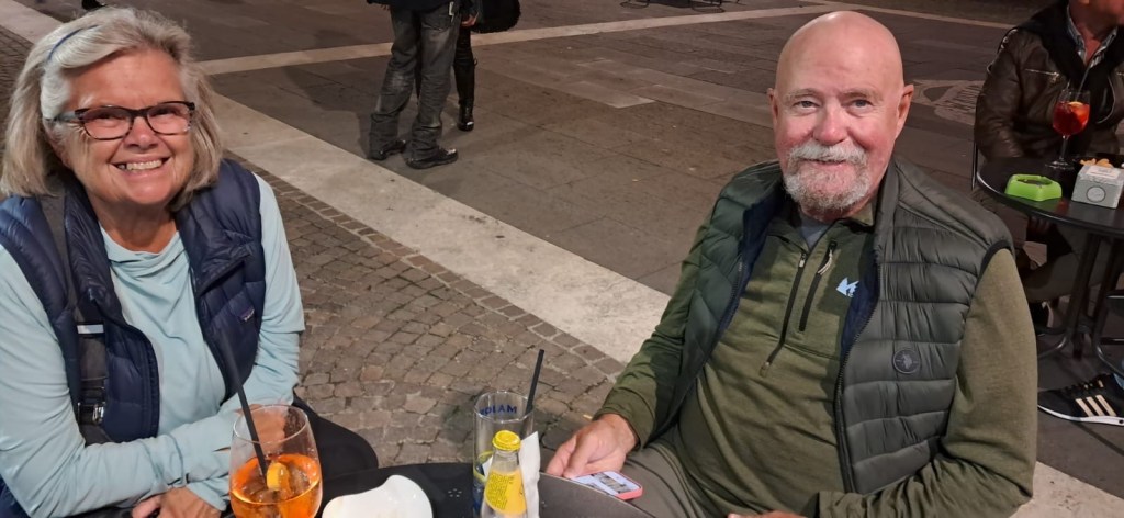 Checked into our B&B, relaxed for a bit, then went to do some much needed laundry. By that time, it was happy hour so off we went again only to meet Fred from the Netherlands and Jaan from Belgium. We sat together. When asked about the walk today they said it wasn’t too bad. Jaan got only wet feet but Fred’s stick broke as he was fording the stream and he fell in!!! Happy we took the bus today!!!!